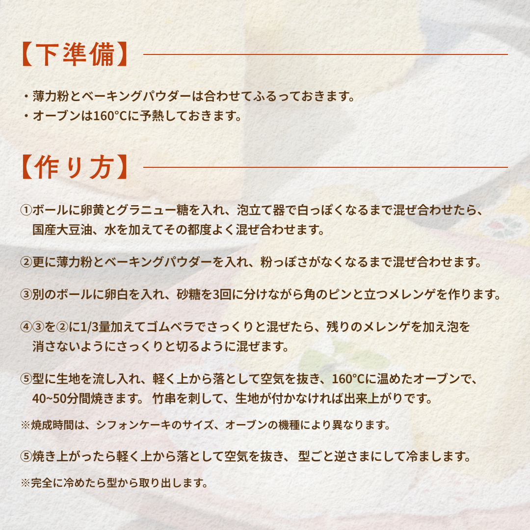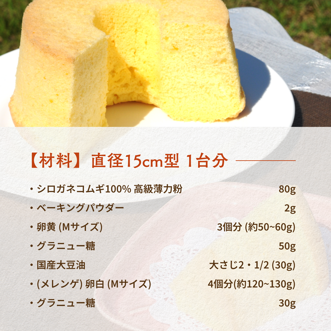 ⇑⇑1袋800円、2袋1,560円、3袋2,280円、4袋3,000円(おまとめでお得)・きめが細かくしっとりしている高級薄力粉、ワンランク上のお菓子も作れます。名称:小麦粉原材料名: 小麦(佐賀県産)内容量:1kg賞味期限:未開封の状態で製造日より12ケ月保存方法:高温多湿の場所、直射日光を避けて、においの移らない場所に保存してください。製造者:理研農産化工株式会社 佐賀市大財北町2番1号本品に含まれているアレルギー物質:小麦 シロガネコムギ100%高級薄力粉で作る お勧めレシピ●ショートブレッドのレシピは、こちら ●ディアマンクッキーのレシピは、こちら●ジェノワーズ ●どら焼き ●シフォンケーキ 材料 作り方 材料 作り方 材料 作り方